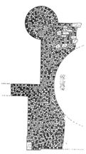L’accurato rilievo dell’epoca, mostra con chiarezza la struttura muraria e il suo inserimento, all’interno di elementi di spoglio, ad esempio nell’angolo sinistro in basso e nella parte frontale (fig. 2).