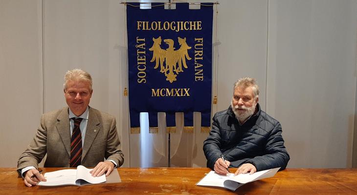 L’accordo è stato firmato il 9 novembre 2021 dal presidente della Società Filologica Friulana, Federico Vicario, e dal presidente della Società Friulana di Archeologia, Maurizio Buora.