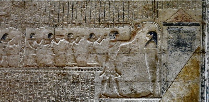 Lo sperduto sito di Tuna-el-Gabal, affiorante dalle sabbie del deserto nella zona ad ovest del Nilo in corrispondenza dell’attuale Ashmunein, è la Necropoli dell’antica Hermopolis Magna, la patria del Dio Thot. Una delle sue tombe del periodo tardo (XXX dinastia) ospita l’ultima dimora del Grande Sacerdote di Thot Petosiris, studiata approfonditamente e scrupolosamente da Gustave Lefebvre, che pubblicò nel 1923 tre volumi di appunti. Un altro archeologo di inizio ‘900 François Daumas studiò in particolare le figure della parete di fondo della tomba e ne lesse i contenuti in chiave esoterica.