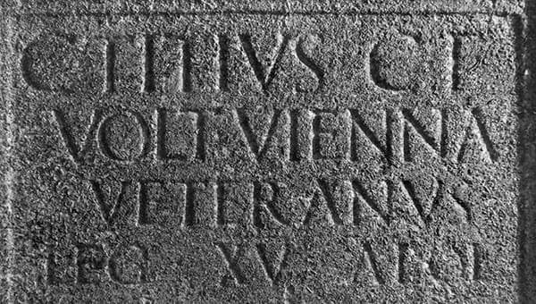 Testo: C(AIVS) TITIVS C(AI) F(ILIVS) / VOLT(INIA) VIENNA / VETERANVS / LEG(IONIS) XV APOL(LINARIS)
