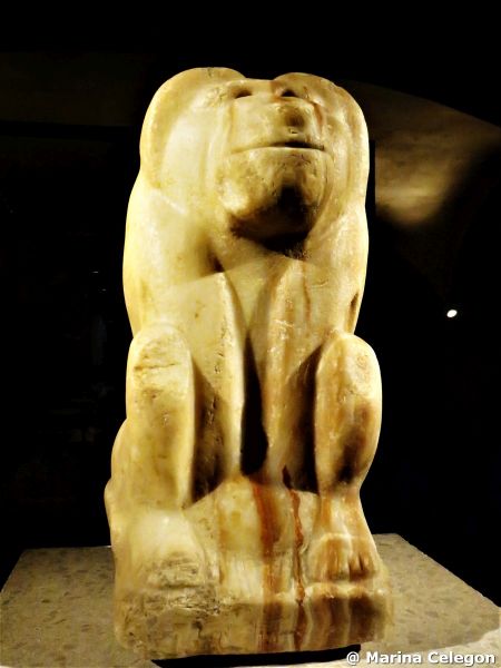 Al Neues Museum di Berlino è conservata un’impressionante statua in alabastro che rappresenta un babbuino amadriade, una grande scimmia non arborea presente nell’Antico Egitto. I maschi adulti raggiungono i 50-90 cm ed un peso di circa 20 chili. Il loro pelo è bianco argento con una vera e propria criniera sulle spalle ed il muso senza peli. Vivono in gruppi familiari sotto la guida di un vecchio maschio, ma talvolta si radunano in bande numerose che contano anche 100 esemplari. Sono animali molto intelligenti, guardinghi e prudenti ma anche coraggiosi e talvolta aggressivi.