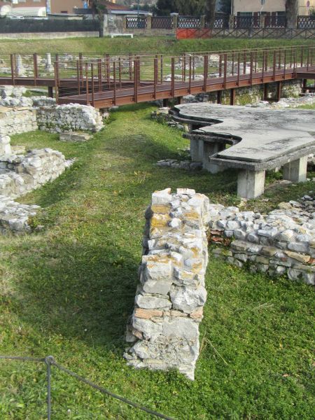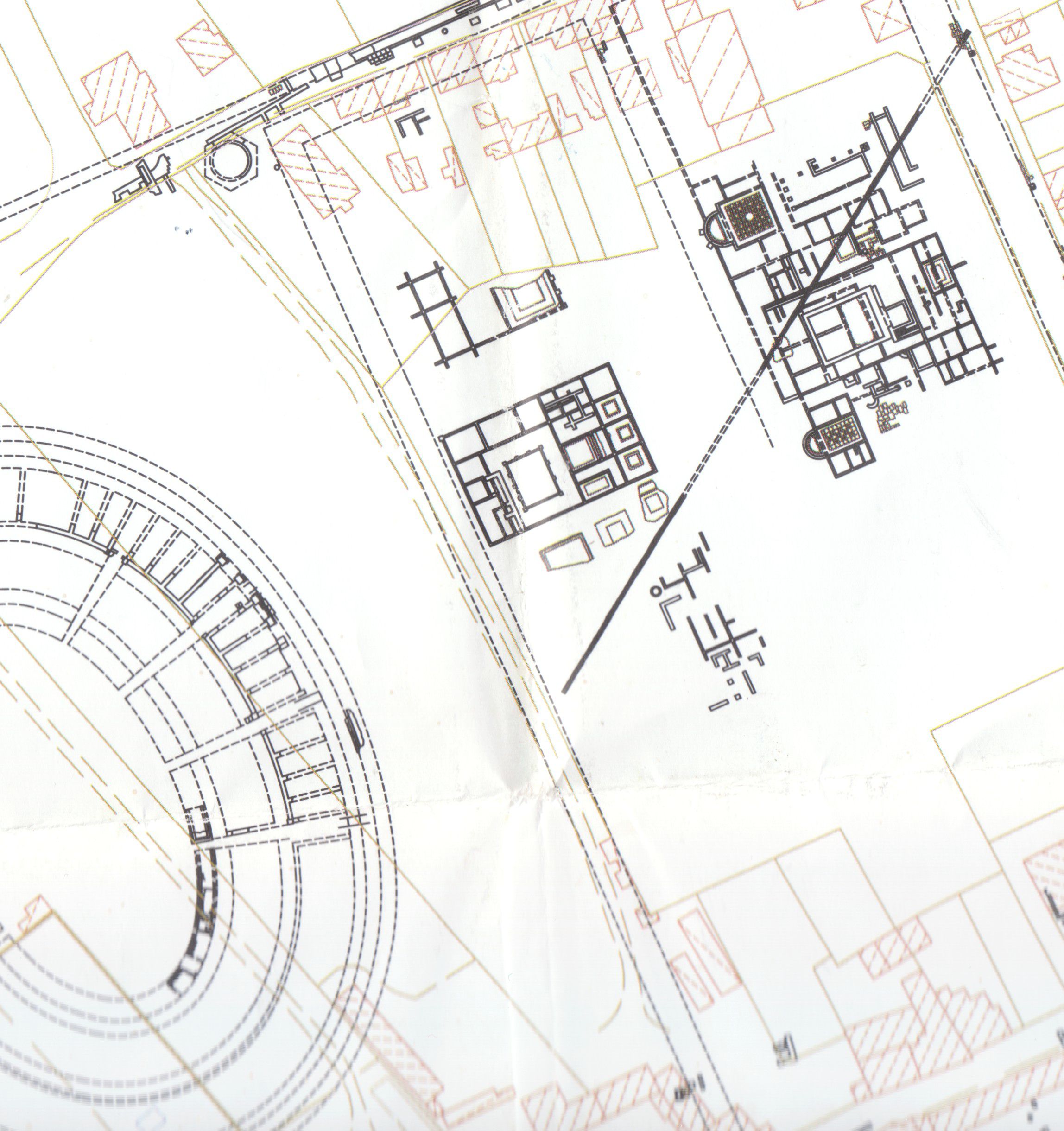 In uno degli scavi più sfortunati di Aquileia, quel fondo CAL che si ostina a rimanere per molti oscuro e che non fu neppure pubblicato – se non solo per un mosaico – dal Brusin, che lo scavò nel 1954, c’è un muro che si segnala per la sua singolarità. Molti osservano una tubatura in cotto (che oggi minaccia di disintegrarsi) che sfregia l’area di scavo (fig. 1). Pochi sanno che è l’acquedotto teresiano che portava l’acqua alla fontana di piazza S. Giovanni, posta davanti alla vecchia chiesa parrocchiale di Aquileia.